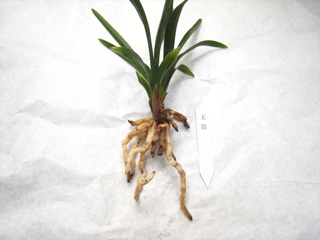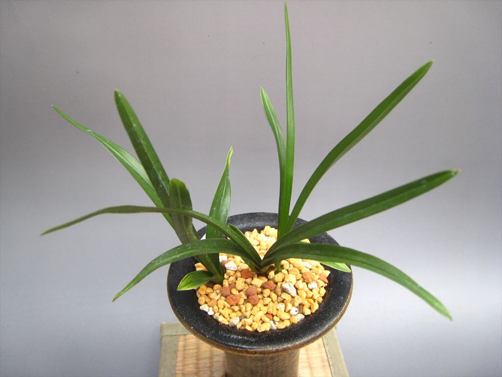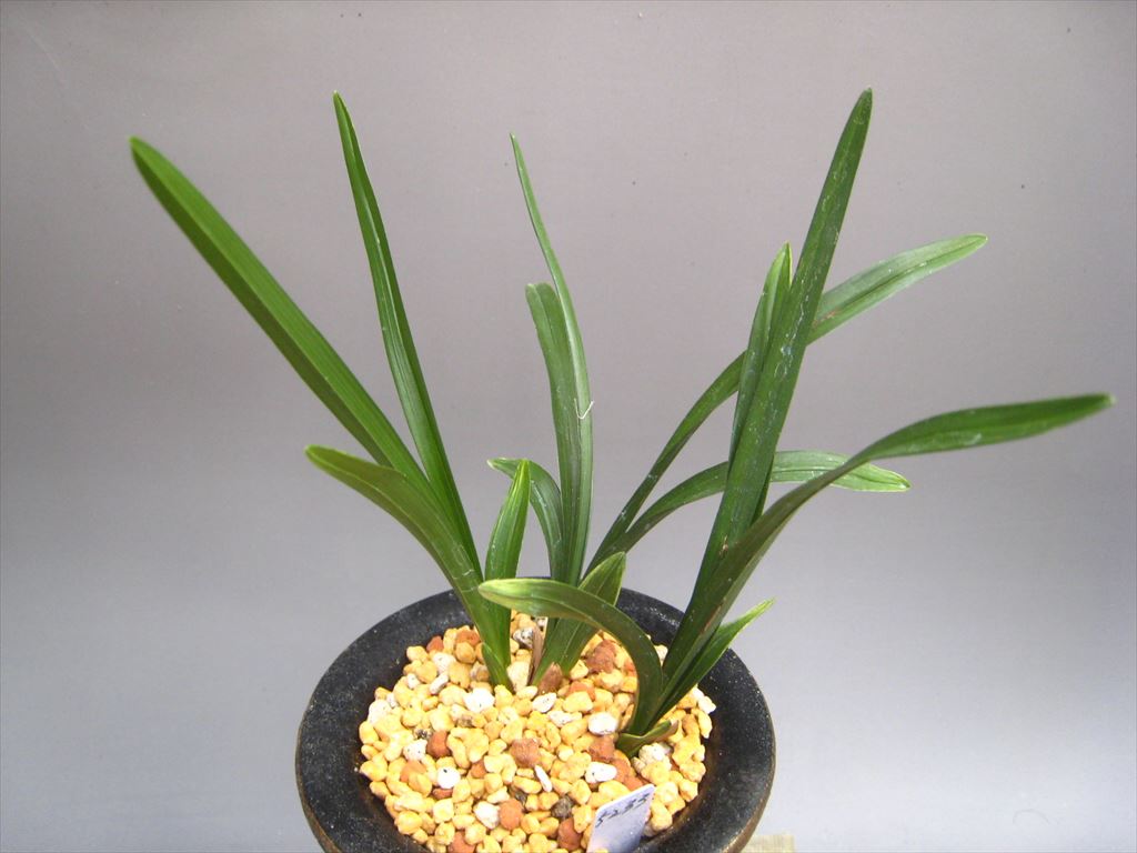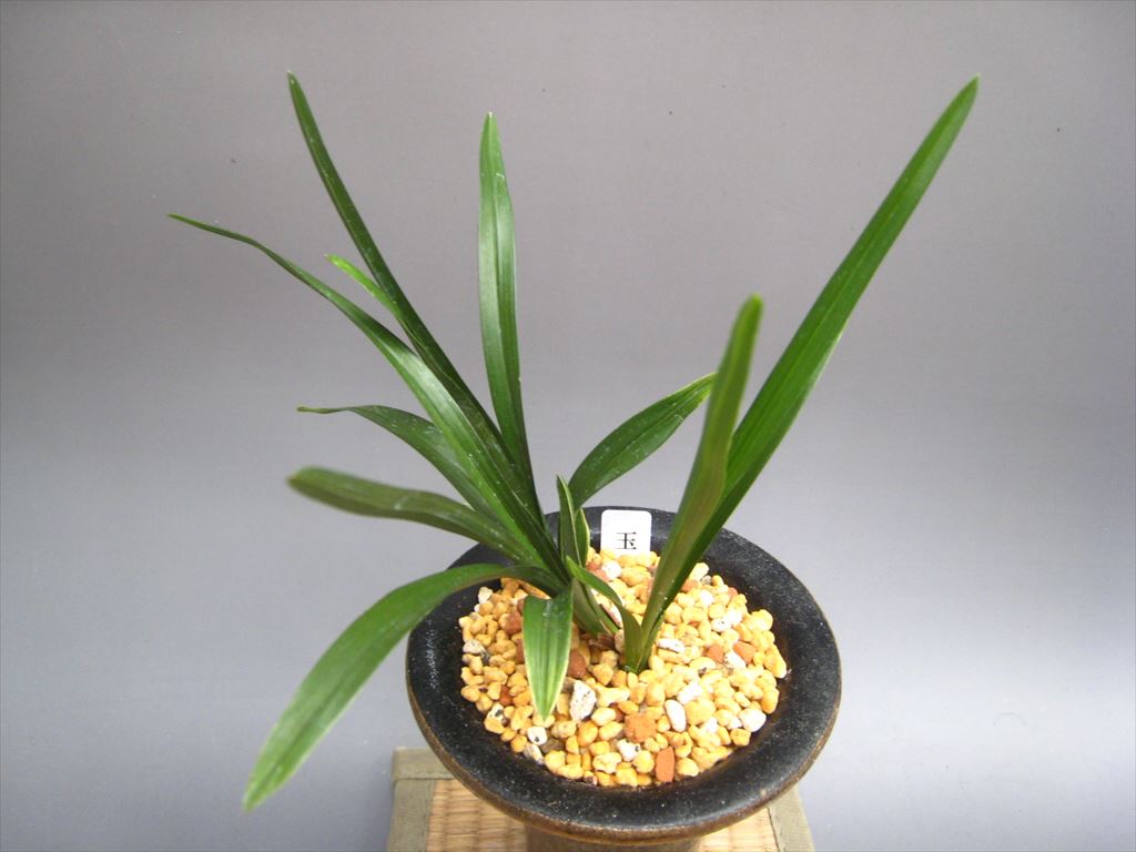 新入荷 玉散(韓国春蘭) 玉散(韓国春蘭) (5233) 上木3本立ち 後ろ木から、5枚葉(約14㎝)-6枚葉(約14㎝)-新子4枚葉(約14㎝) 在庫状態 : 在庫有り ¥450,000(税込) 数量