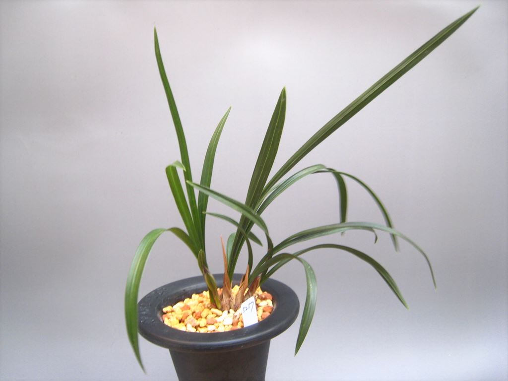 錦山(韓国春蘭)蕾1 錦山(韓国春蘭)蕾1 (5257) ◎蕾1付き 中上木4本立ち 後ろ木から、2枚葉(約14㎝)-4枚葉(約17㎝)-5枚葉(約24㎝)-新子5枚葉(約18㎝) 在庫状態 : 売り切れ ¥9,000(税込) 只今お取扱い出来ません