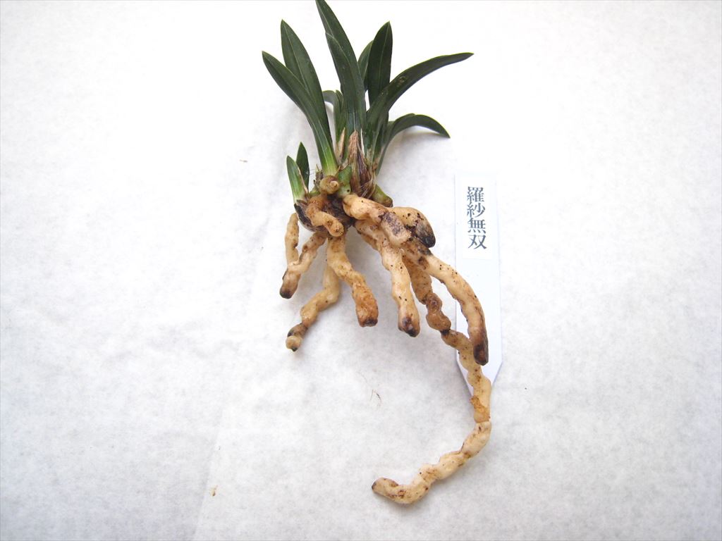 羅紗無双(韓国春蘭) 羅紗無双(韓国春蘭) (5301) (状態)中木4本立ち 芋2-4枚葉(約4㎝)-4枚葉(約5㎝)-4枚葉(約4㎝)-4枚葉(約4)に新子付き 在庫状態 : 売り切れ ¥0(税込) 只今お取扱い出来ません
