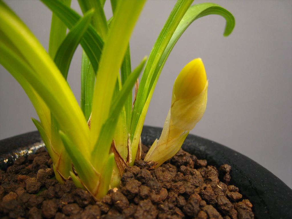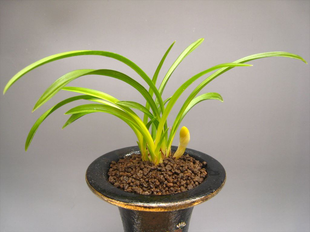 新入荷 望月(韓国春蘭)蕾1 望月(韓国春蘭)蕾1 (5327) ◎錦鉢使用 (状態)綺麗な上木4本立ちに蕾1付き 後ろ木から、4枚葉(約16㎝)-新木4枚葉(約11㎝)・5枚葉(約18㎝)-新子4枚葉(約12㎝) 在庫状態 : 在庫有り ¥950,000(税込) 数量
