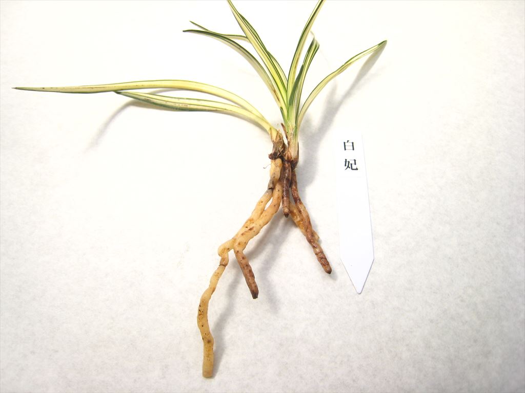 新入荷 白妃(韓国春蘭) 白妃(韓国春蘭) (5359) ◎白縞(汚れが少しあります) (状態)中木3本立ち 後ろ木から、2枚葉(約13㎝)-4枚葉(約10㎝)-新子4枚葉(約8㎝) 在庫状態 : 在庫有り ¥45,000(税込) 数量